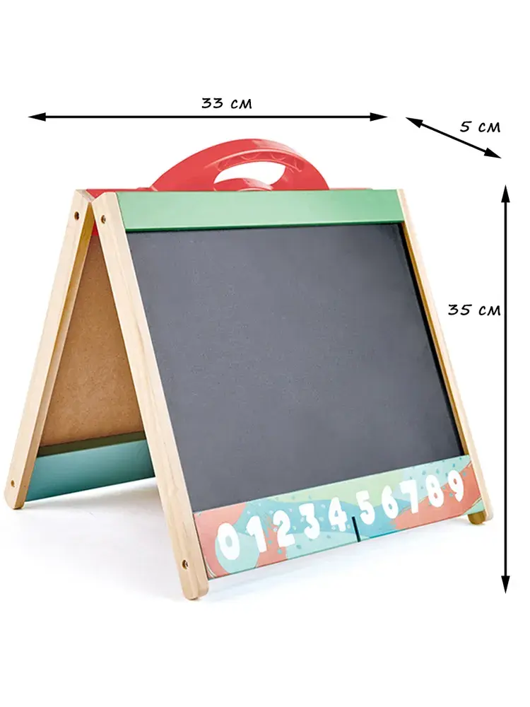 Мольберт - это удивительная игрушка для детей в области декоративно-прикладного искусства. Двусторонний дизайн имеет магнитную доску с одной стороны, а с другой - черную доску для рисования. У столешницы есть ручка, которая служит держателем для бумаг, поэтому ваши маленькие художники могут по-разному проявить свои художественные таланты! Набор складывается и фиксируется деревянной защелкой для аккуратного хранения, в котором можно разместить все художественное оборудование вашего ребенка. Поставляется с 1 белой и 1 черной доской, 2 магнитными маркерами для белых досок с ластиком, 12 цветными мелками и держателем для зажима для мела. Рисуй, раскрашивай - просто дайте волю своему воображению! Отлично подходит для развития самовыражения, творческих способностей и воображения.